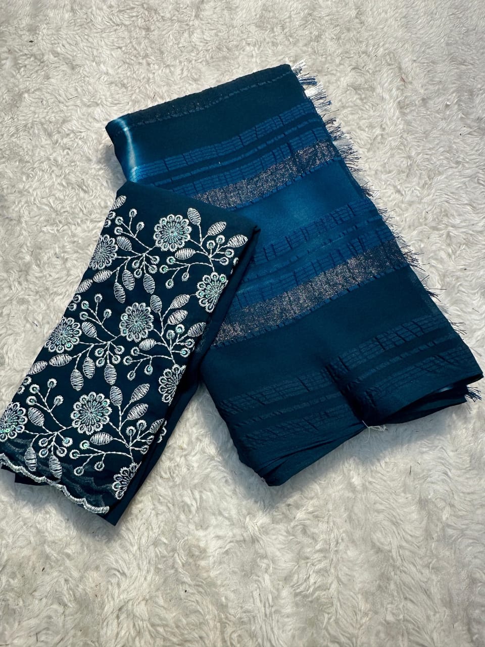 Murga Print Soft Georgette Saree With Rangoli Emrodairy Work Blouse & Tassel